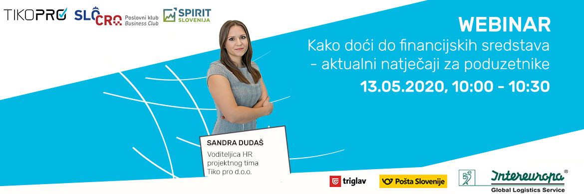 Na spletnem seminarju, ki ga izvajamo v sodelovanju s SLO-CRO poslovnim klubom, bo Sandra Dudaš, vodja projektne skupine Tiko Pro Hrvaška, predstavila trenutne razpise za podjetnike in odgovorila na vprašanje, kako priti do finančnih sredstev prek razpisov: