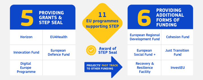 Kot že omenjeno, STEP mobilizira obstoječe Programe financiranja EU, kot so program Digitalna Evropa, program Obzorje Evropa, Evropski obrambni sklad, program EU4Health, Sklad za inovacije in drugi programi.  STEP ne ustvarja novih pravil glede upravičenosti prijave na omenjene EU programe. Prijavitelji bodo za  financiranje v okviru določenega razpisa STEP morali  izpolnjevati posebna pravila zadevnega programa financiranja, kot so opredeljena v delovnih programih in razpisih, kamor spadajo merila za upravičenost, izbor in dodelitev. Projekti, ki bodo izpolnjevali strateška merila, bodo prepoznani v okviru pobude STEP, s čimer EU zagotavlja, da bodo sredstva usmerjena v tehnologije, ki so ključne za prihodnost Evrope. Pri tem morajo projekti izpolnjevati vsaj enega od dveh kriterijev: